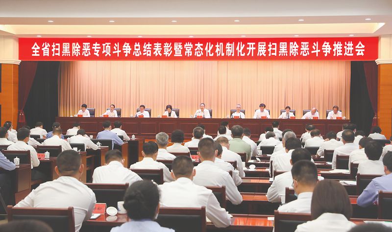 6月23日上午,全省掃黑除惡專項斗爭總結表彰暨常態(tài)化機制化開展掃黑除惡斗爭推進會在合肥召開。省委書記李錦斌出席會議并講話。他強調,要深入學習貫徹習近平法治思想和習近平總書記關于常態(tài)化機制化開展掃黑除惡斗爭的重要指示精神,深入學習貫徹習近平總書記考察安徽重要講話指示精神,加強系統(tǒng)治理、依法治理、綜合治理、源頭治理,常態(tài)化機制化開展掃黑除惡斗爭,持之以恒、堅定不移打擊黑惡勢力及其“保護傘”,努力建設更高水平平安安徽、法治安徽。