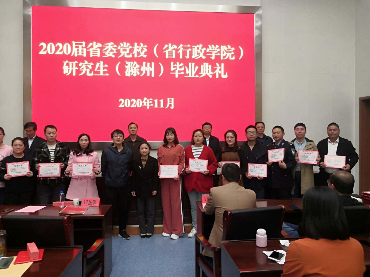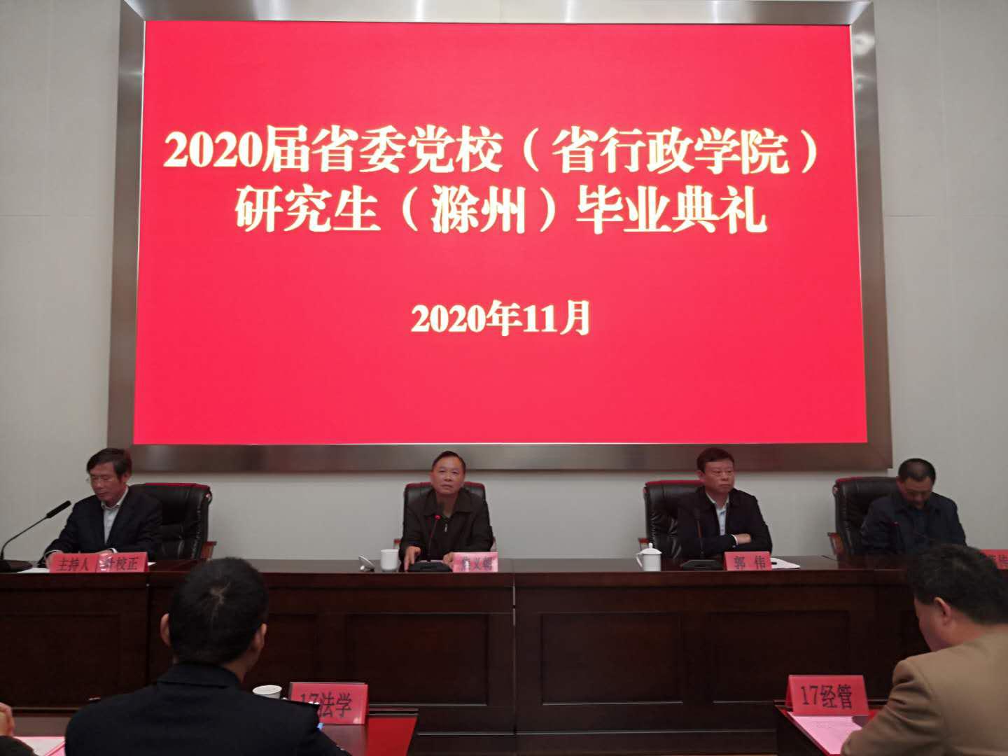 2020年11月7日上午,安徽省委黨校在職研究生滁州教學(xué)點(diǎn)2020屆研究生畢業(yè)典禮在市委黨校205報(bào)告廳舉行。滁州市委黨校(滁州市行政學(xué)院)常務(wù)副校長(zhǎng)焦義朝、安徽省委黨校(安徽省行政學(xué)院)研究生部主任郭偉出席,2020屆法學(xué)和經(jīng)管專(zhuān)業(yè)共140名學(xué)員參加畢業(yè)典禮。